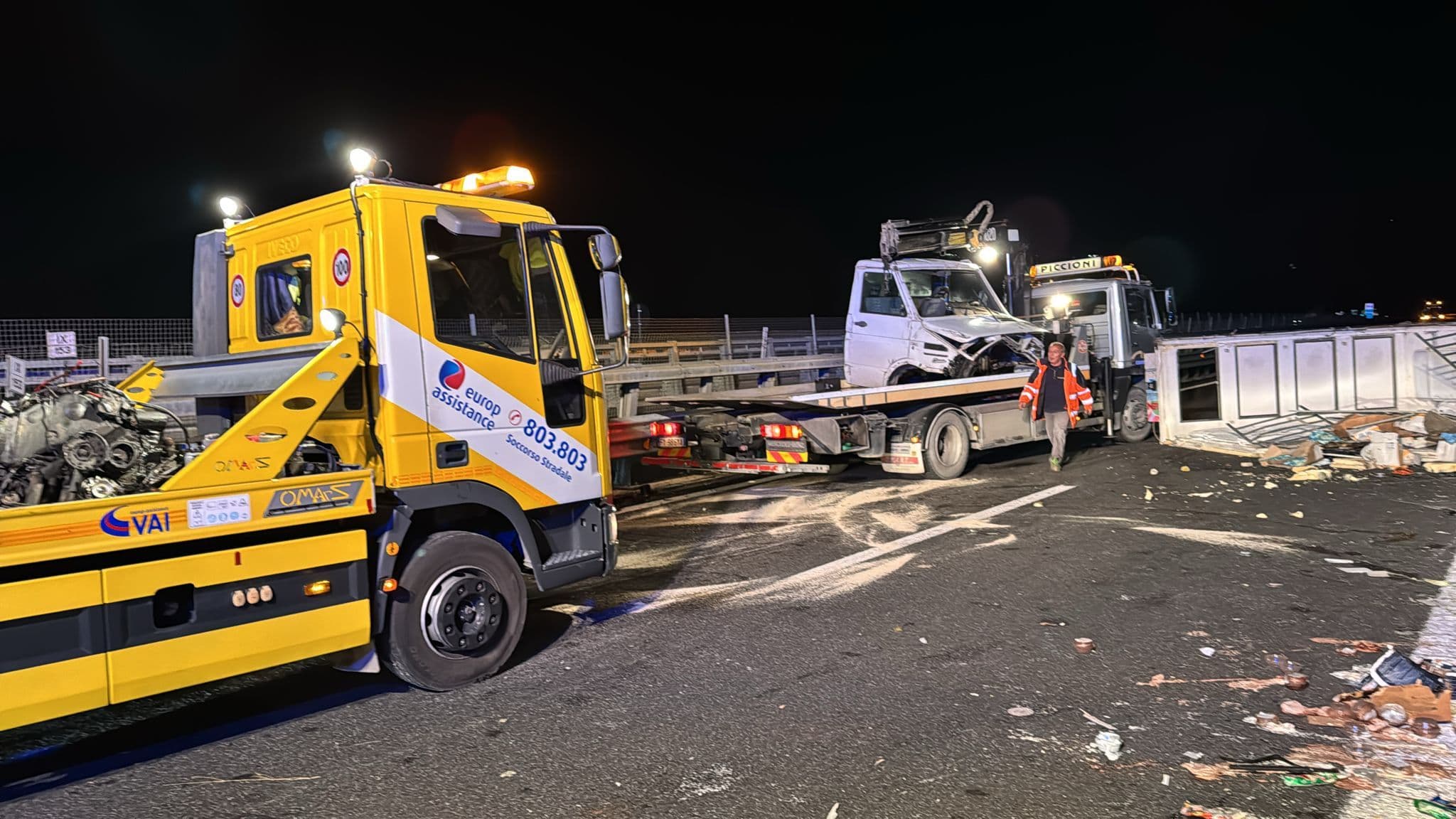 Sul posto gli operatori sanitari e i vigili del fuoco di Teramo. Il traffico è stato momentaneamente bloccato fino al ripristino della sicurezza della viabilità con l'intervento della Polizia Stradale. L'autista ferito ma cosciente è stato trasportato al Mazzini di Teramo.